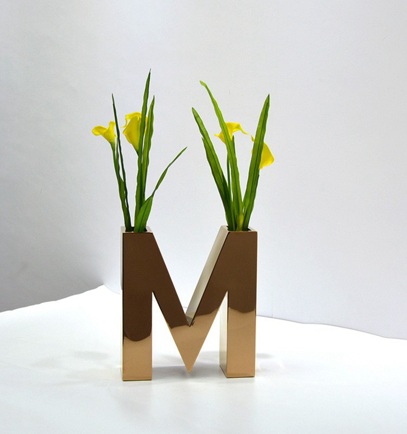 北京金利恒旺公司是一家專業(yè)的不銹鋼花瓶生產(chǎn)廠家,地址是在北京市大興區(qū)長(zhǎng)子營(yíng)鎮(zhèn)。有剪板折彎?rùn)C(jī),表面處理設(shè)備,可定制加工各種形狀,各種顏色的金屬花瓶。我們注重產(chǎn)品細(xì)節(jié)打磨,專注高檔不銹鋼制品的設(shè)計(jì)研發(fā),只為您提供一個(gè)完美無(wú)缺的產(chǎn)品。上圖的M字形不銹鋼花瓶造型獨(dú)具匠心,富有設(shè)計(jì)感,特別適合現(xiàn)代和后現(xiàn)代的裝修風(fēng)格。另外我們也可以做成別的字母形狀的。價(jià)格大概是200元一個(gè)。