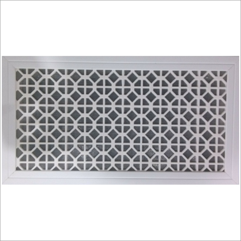 不銹鋼排風口鏤空“雕刻”樣式多種,一般比較自由,除了裝在排風口之外、墻壁之外,其外廓都沒有什么限制。由于適應一般的窗格,為避免影響照明,其尺寸都不太大,且要注意鏤空透亮。為了增強藝術效果,創造濃烈的氣氛,一個窗子往往都是有比較濃厚的古色色彩或中國的文化底蘊,或在內容上配套。出風口一般為方形散流器,呈方行多層可拆卸,一般用防火帆布連接,無過濾網;出風口有噴口,散流器方形的或圓形的,有雙層百葉,或條縫型風口,出風口一般有調節風量大小或角度的葉片,回風口一般不要求那么多。