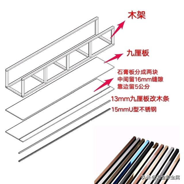 為什么不用直接在石膏板或墻面釘細(xì)木條再安裝不銹鋼條的方式?因為覺得太突出不好看。