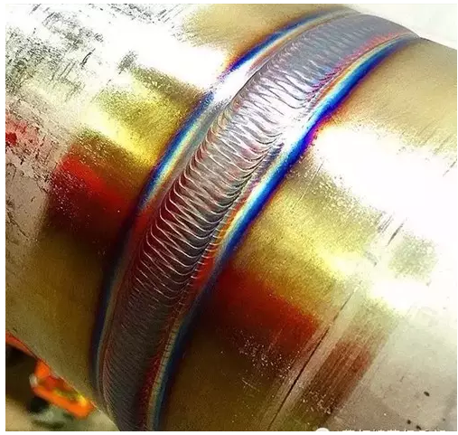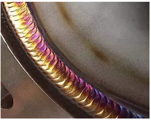 對,銀白色所以,在氬弧焊過程中,焊縫好看、漂亮不一定是最好的另外,在氬弧焊過程中是不是還會出現(xiàn)下面這種顏色五彩的顏色