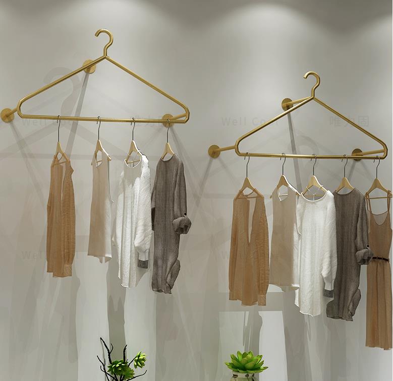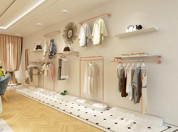 服裝店不銹鋼玫瑰金上墻展示架圖片