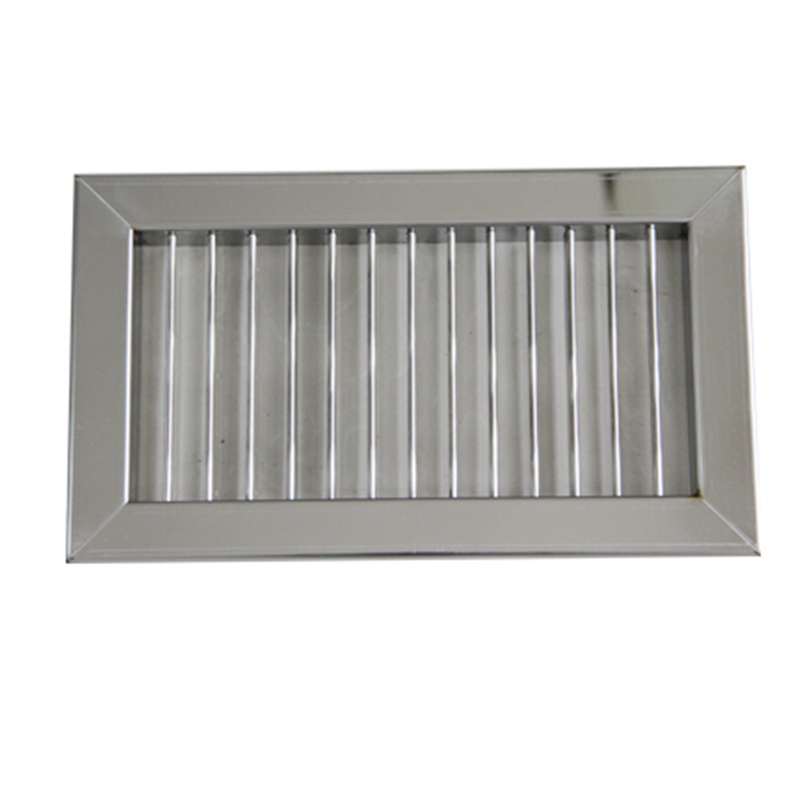 不銹鋼單層百葉風口是由若干片薄鋼板制成的葉片用鉚釘固定在外框上組成的。